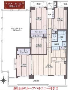 旧鹿島建設株式会社施工の最上階(40㎡超のルーフバルコニー付き住戸)